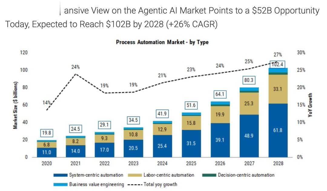 摩根士丹利(AIAgentsKnockingattheDoor)指出,该市场存在520亿美元的机遇,预计到2028年将达到1020亿美元(年复合增长率26%)。