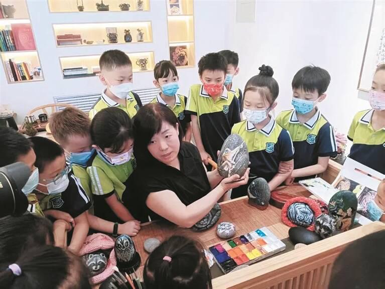 一盘颜料、几只画笔、一块石头,在吴庆霞巧手的精心勾勒和描绘下,其貌不扬的石头被赋予了新的生命,成为一件精美的艺术品。